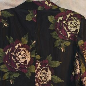 Tuzzi Jacket embroidered fabric, gold and red flowers on black. Jacket is lined and very light. Dressy for dinner and casual for the day. No tag But I deem it to be a large. If interested please contact me for measurements. TUZZI SZ L