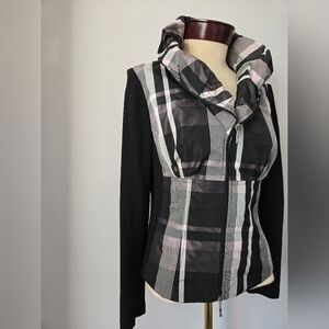 TUZZI Black,Pink and Gray Plaid Jacket. size 8