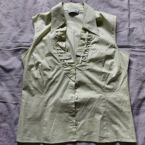 TUZZI Germany Light Olive Button Down Cotton Shirt Blouse Size S/M