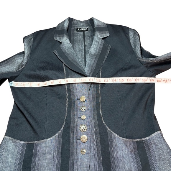 TUZZI Linen Blend 2 Pc Pantsuit Shoulder Pads Stretch Inserts Sz 12-14