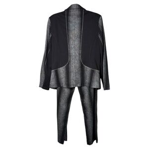 TUZZI Linen Blend 2 Pc Pantsuit Shoulder Pads Stretch Inserts Sz 12-14