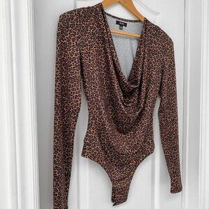 🎬✨ TV Show Supergirl - AFRM - Levi Cowl Leopard Print Bodysuit