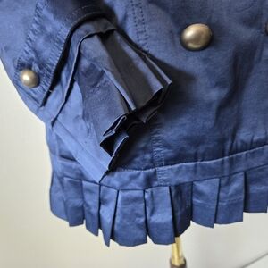 TWELVE BY TWELVE Navy Ruffled Hem Double-Breasted Jacket. Size Small