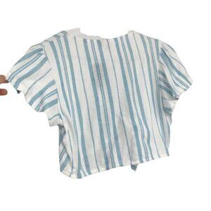 TWIK Simons blue white stripe tie front short sleeve crop top M