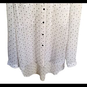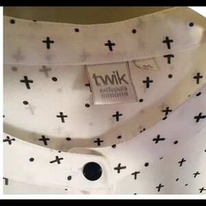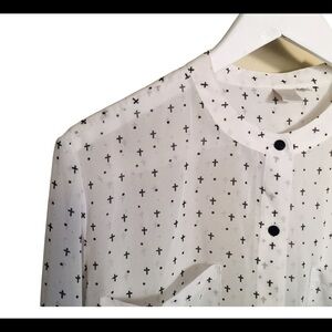 TWIK by Simons Dainty Cross Print Button Down Collarless Blouse Ivory Size Large
