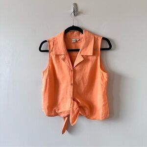 TWIK-LINEN Blend Tie Front Sleeveless Top (Small)