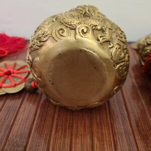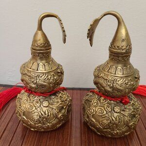 TWO Feng Shui Heavy Brass Hollow Gourds with Coins to Attract Wealth