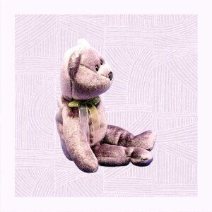 Meet Ty's Millennium 2000 Bear, a Beanie Baby celebrating the new century. It does not have the ear tag but has the tush tag. It measures 8.5 inches in length and is a soft mottled purple color in excellent, clean, pre-owned condition. It is ready to become part of a new collection of Beanie Babies!