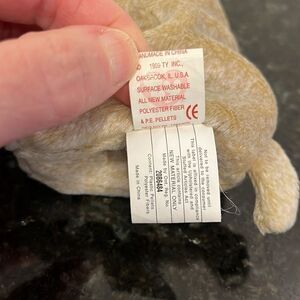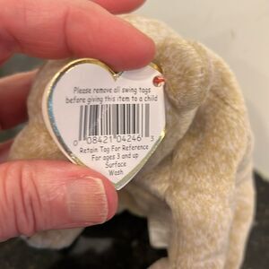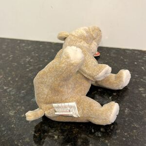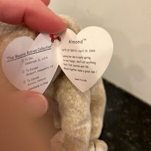 TY Beanie Baby Almond the Beige Bear 1999 Babies Plush Doll Shiny Black Eyes with ear tag. Size 7”
