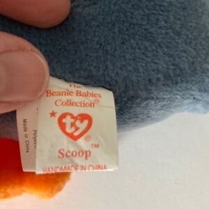 BEANIE BABY TY 1996 Retired SCOOP the Pelican Stuffed Animal Toy Plush. Grey and Orange. Still has original tag with error. Smoke Free Home.