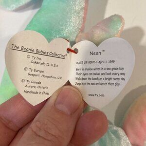 BEANIE BABY TY Neon seahorse toy plush. Still has original tag. No rips or stains. Light pastel colours. Smoke Free Home.