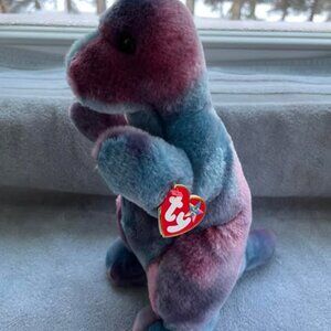 TY beanie buddy, REX, from a personal collection. REX the dinosaur, was introduced on May 1, 2000 and retired on June 21, 2000, and is approx. 10.75" tall. Item is in brand new condition - has been tag-protected, stored in a cool/dry place, from a smoke-free home, and has never been played with. Has some "fur" wrinkles from storage, which should relax over time.