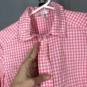 Tyler Boe Sherri Blossom Pink White Gingham Button Down Tunic Length Blouse Shirt Sz 4