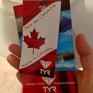 TYR Rashguard with tags. Waterproof and protects you from the sun, you can wear it in the water. Long sleeved. Size medium. Made in Canada, TYR is a great swim brand that makes high quality items. Smoke free home.