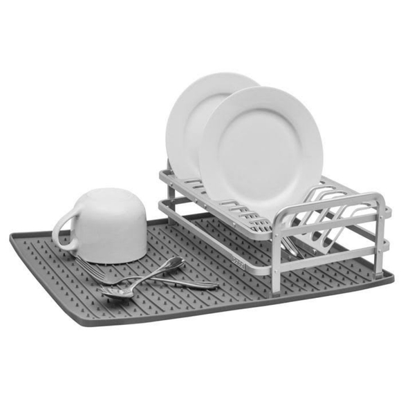 Ta Da Compact Aluminum Dish Rack with Silicone DrySmart Mat Set Rust-Proof Gray