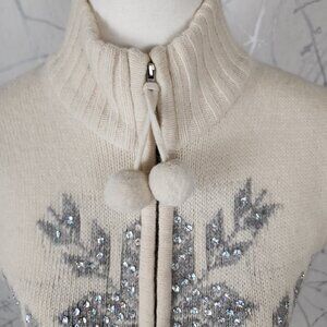 Tabi Lambswool Angora Blend Sequin Snowflake Full Zip Turtleneck Sweater Vest