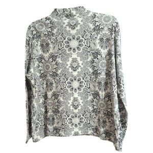 Tabi Turtleneck Top in White with a Black Floral Print, featuring long sleeves a
