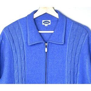 Tabi Womens Cardigan Sweater 100% Wool Grandma Full Zip Long Sleeve Blue Large