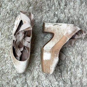 Tabitha Simmons Sky pink velvet ballet wrap platform heels. Round toe, rear zip enclosure. Made in Italy. Original box and bag, excellent condition, worn only a few times & never outside. EU 41.