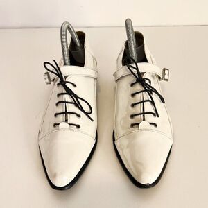 Tabitha Simmons White Patent Leather Pointed Toe Oxfords