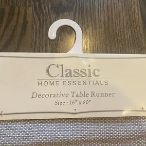 Classic Home Essentials decorative table runner. 16” x 80” 100% Cotton, machine washable. Grey