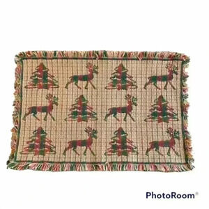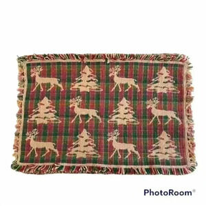 Table Runner Placemats Towel Set Red Plaid Christmas Reindeer Motif