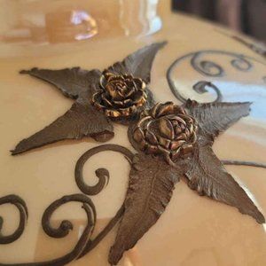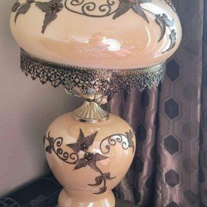 TWO TABLE LAMP Vintage Gone with the Wind Parlor Lamp Metal Flowers White Blue Milk Glass shade EXCELLENT CONDITION