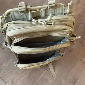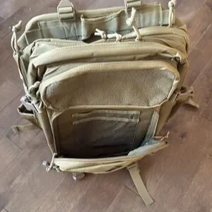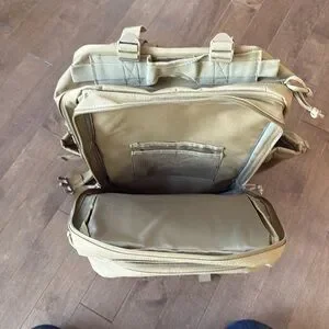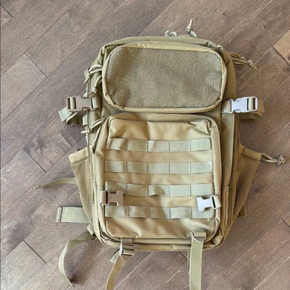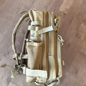 Durable and versatile tactical backpack in tan. Perfect for everyday use or outdoor adventures. Multiple pockets, and hydration compatible. Never used; in brand new condition.