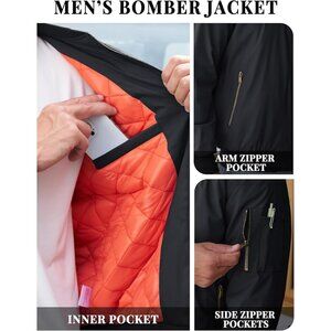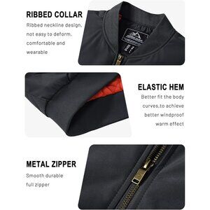Tacvasen Mens Black Bomber Winter Warm Padded Work Coat Casual Windproof Jackets