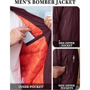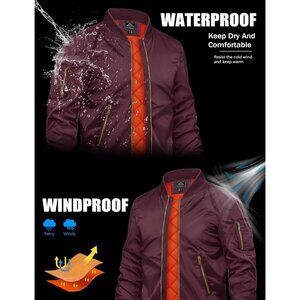 Tacvasen Mens Red Bomber Winter Warm Padded Work Coat Casual Windproof Jackets