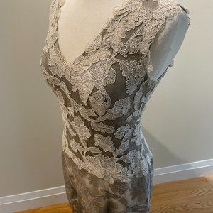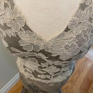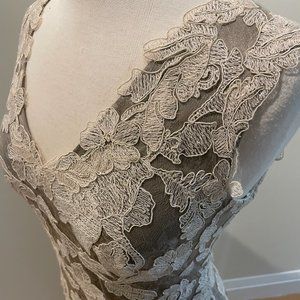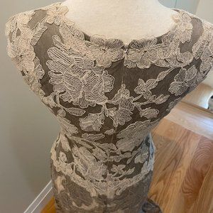 Tadashi Shoji Scalloped V-Neck Sleeveless Two Tone Corded Lace Gown