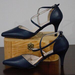 Taffy Step High Heel Shoe Size 7.5 Blue in color Closed toe