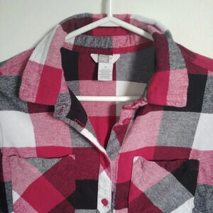 Tag Flannel Plaid Blouse Shirt, Checkered, M
