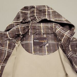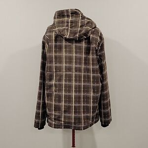 Fleece lined checked jacket with packable hood