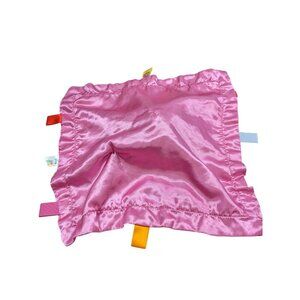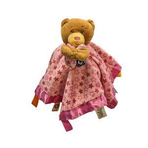 Taggies Teddy Bear Baby Security Blanket Lovey Pink Flower Satin Trim Back Plush