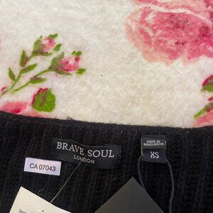 Tags Attached black knitted puffy sleeves drop sleeve plunge knitted sweater!
