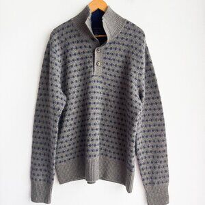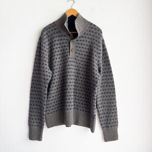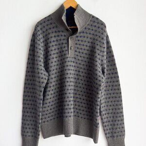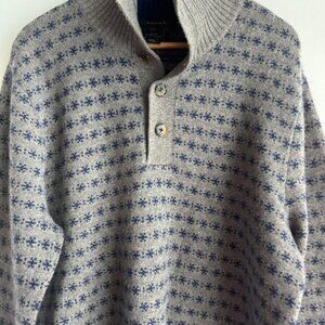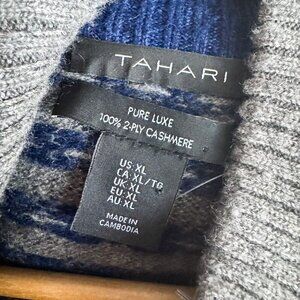 Tahari 2 Ply Cashmere Grey Blue Button Neck Turtleneck Pullover Sweater XL.
