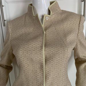 Tahari 6 cream bone tan suit jacket skirt coordinate. Elegant stunning the fabric is soft and lightweight The perfect suit for so many occasions the detail on the sleeves and collar is exquisite. Never worn some tags still on it