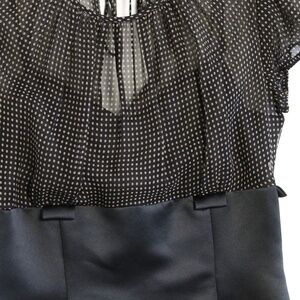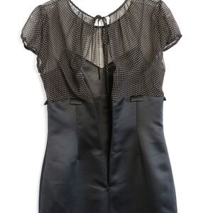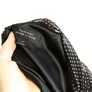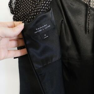 Tahari ASL Arthur Levine black cocktail sheath dress mixed fabric polka dot silk