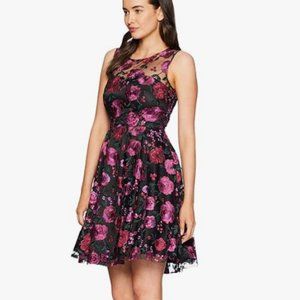 Tahari ASL Floral Embroidered-Mesh Illusion Fit & Flare Dress
