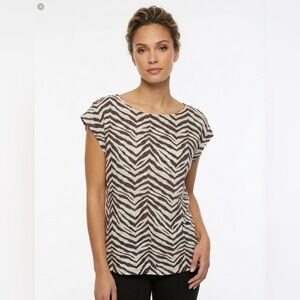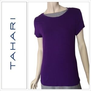 Tahari Ann Knit Rayon Pullover Top Tee T-Shirt Purple Sky L NWT