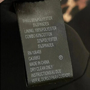 New condition. Fully lined. Back zipper with hook closure. Rounded neckline. Black panel with cheetah print pattern. 5” slit in back hem.