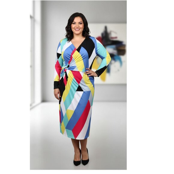 Tahari Arthur S. Levine Multi-Color Geometric Print Dress, Womens Size 18W