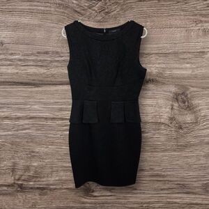 Tahari Black Asymmetrical Peplum Sheath Dress Size 8
