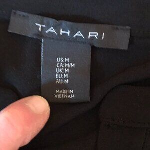 Tahari Black Blouse Top with Faux Pockets 3/4 Sleeves Size M