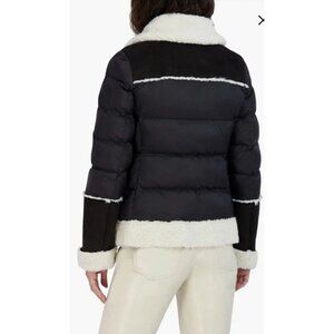 Tahari Black Selena Faux Shearling Trim Jacket Coat Size L Outdoor Winter Fall