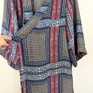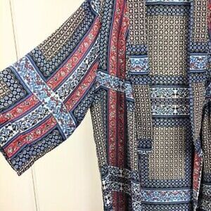Tahari Blue Red Boho Kimono Wrap Duster Small Medium