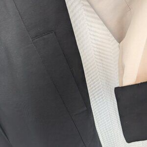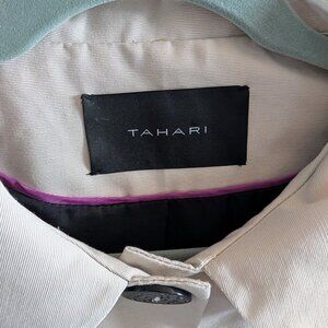 A beautiful and sophisticated Tahari coat that is a perfect addition to any wardrobe. This timeless colorblock coat features a chic cream (Flax) and black design. It's crafted from a soft cotton/polyester blend and is in excellent, like new condition.