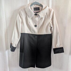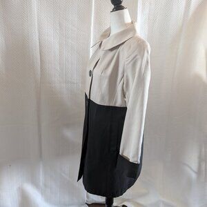 Tahari Colorblock Coat Cream Black Cotton Blend Size Small Overcoat Classic