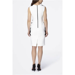 Sophisticated sleeveless sheath edged with floral embroidery for figure flattering definition. Crafted in a smooth refined crepe fabric with a hint of stretch for shape retention and perfect fit. Round neck, Sleeveless, 3/4 sleeves, Hidden back zip with hook-and-eye closure. Polyester Elastane Crepe with Polyester lining. Dry clean. Imported.